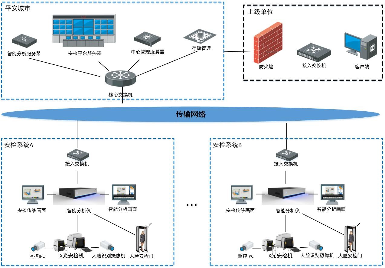 安检数据实时上传平台,打破传统信息孤岛,实现安检联网。平台可结合视频监控、人脸识别业务系统,实现信息融合;